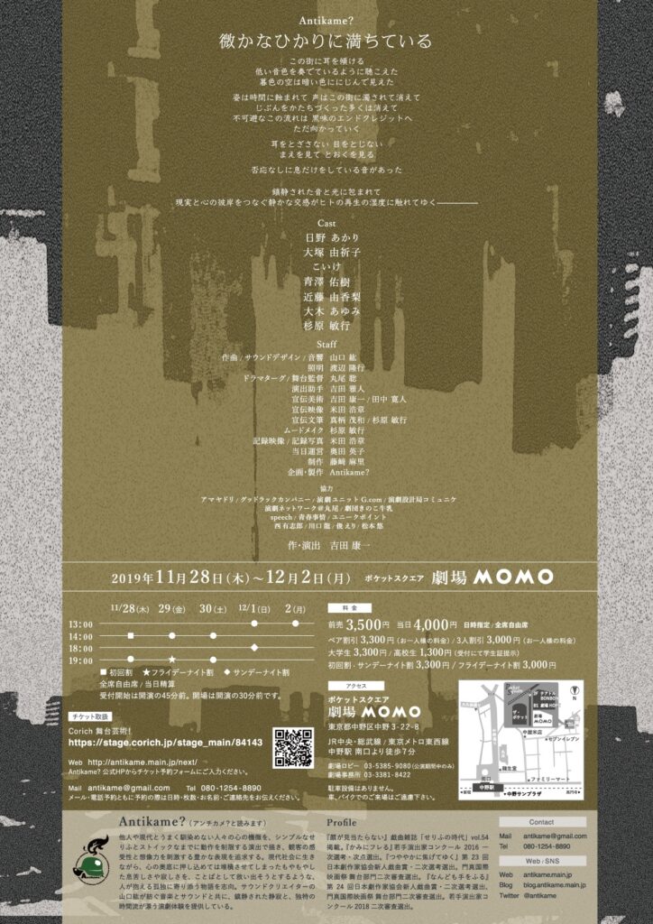 協力:アマヤドリ / グッドラックカンパニー / 演劇ユニットG.com / 演劇設計局コミュニケ / 演劇ネットワーク@丸尾 / 劇団きのこ牛乳 / speech / 青春事情 / ユニークポイント / 西 有志郎 / 川口 龍 / 俊 えり / 松本 悠