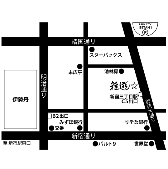 〒160-0022 東京都新宿区新宿3-8-8 新宿O・Tビル 1F:雑遊